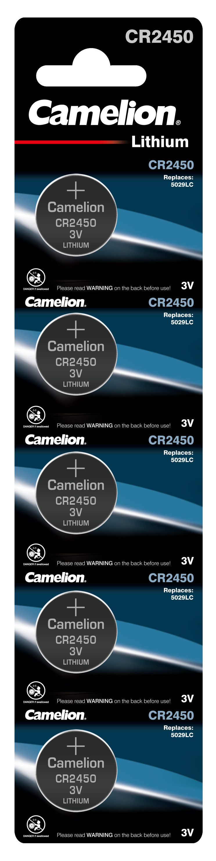 PACK 5 PILAS DE BOTON DE LITIO CR2450 CAMELION
